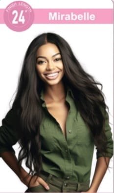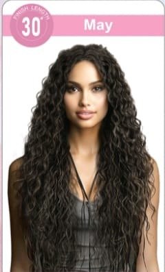 This beautiful sleek loose curl pattern is styled in a lace side parting. Melody features a full front lace, lace side parting and baby hair.