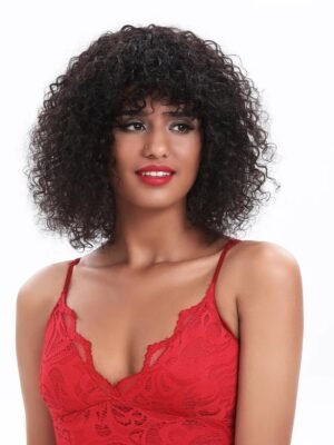 Featuring small, springy curls the Zarrin Wig has a curly fringe style to make this curly hairstyle look natural.