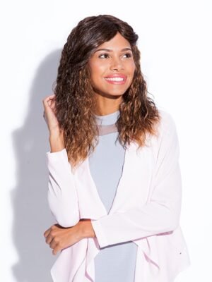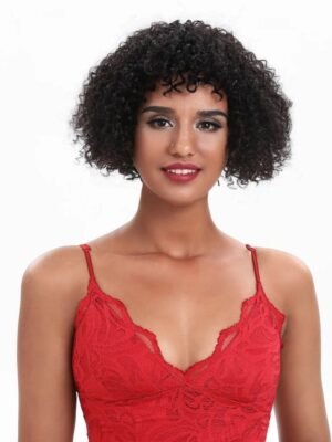 A tight corkscrew curl pattern, Gilda has this natural bouncy curl style. The Gilda fringe can be adjusted and styled to suit.