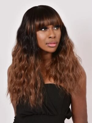 Longer style wig in a loose natural wave pattern. Fern is a natural style wig with a super full, longer style full fringe.