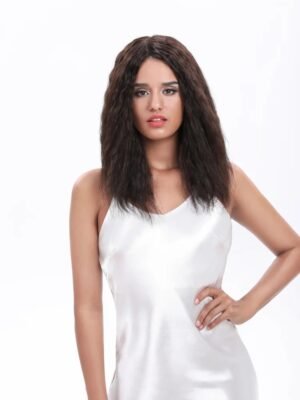 A loose crimped style wig in this mid-length style.