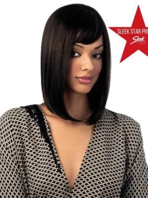 Smooth, silky, shoulder hugging Cleopatra style with a side fringe.