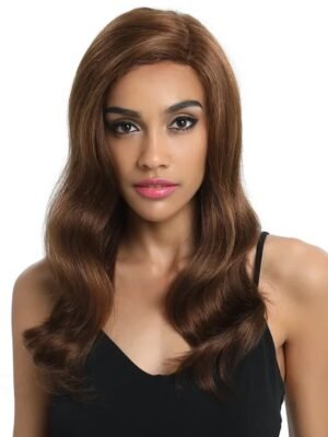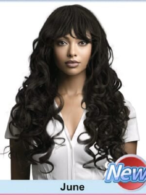 Shoulder length wig of loose, cascading waves. Full of volume, bounce & features a fringe.